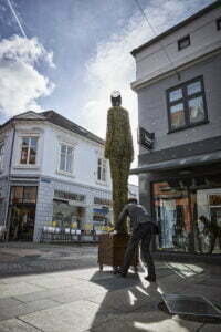 Forestillingen om skulpturen Maren på vognen og dens kunstner, den schweizske Alberto Giacometti, der skulle have været opført i Holstebros Festuge 2020, er aflyst. Men lidt show fik byens borgere at se, da en kæmpe statue af Maren bliver skubbet gennem byens gader.